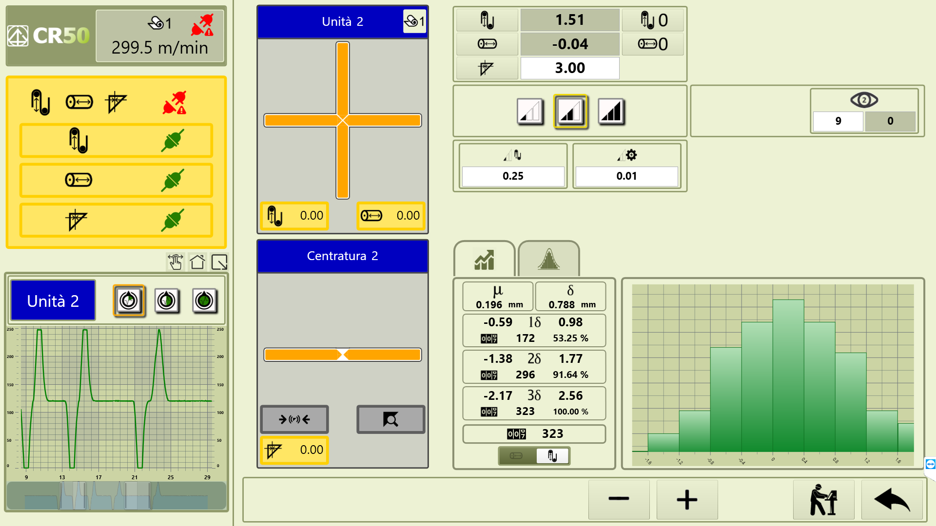 Il controllo di registro CR50 garantisce la massima precisione e riduzione degli scarti nelle diverse fasi dinamiche di produzione: avviamenti, accelerate, cambi bobina sia su rotative ad albero elettrico che meccanico.
